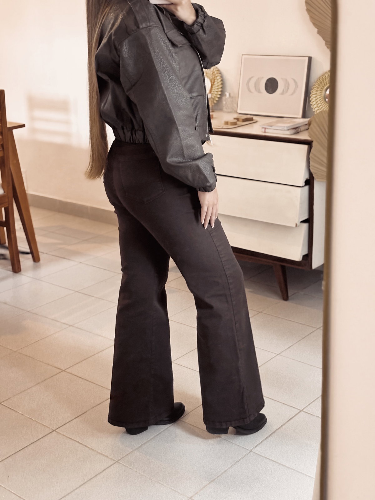 Su tiro alto estiliza la figura y realza la cintura, mientras que el corte wide leg aporta ese toque moderno y canchero que está en tendencia.
