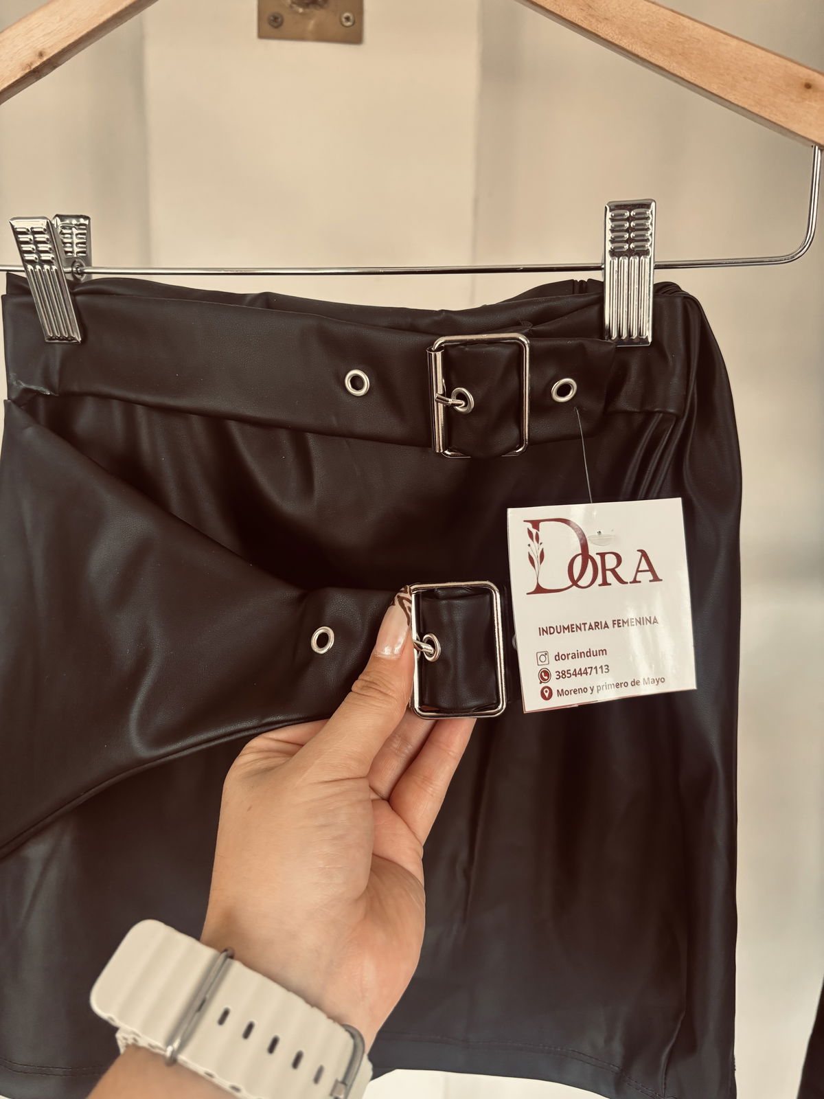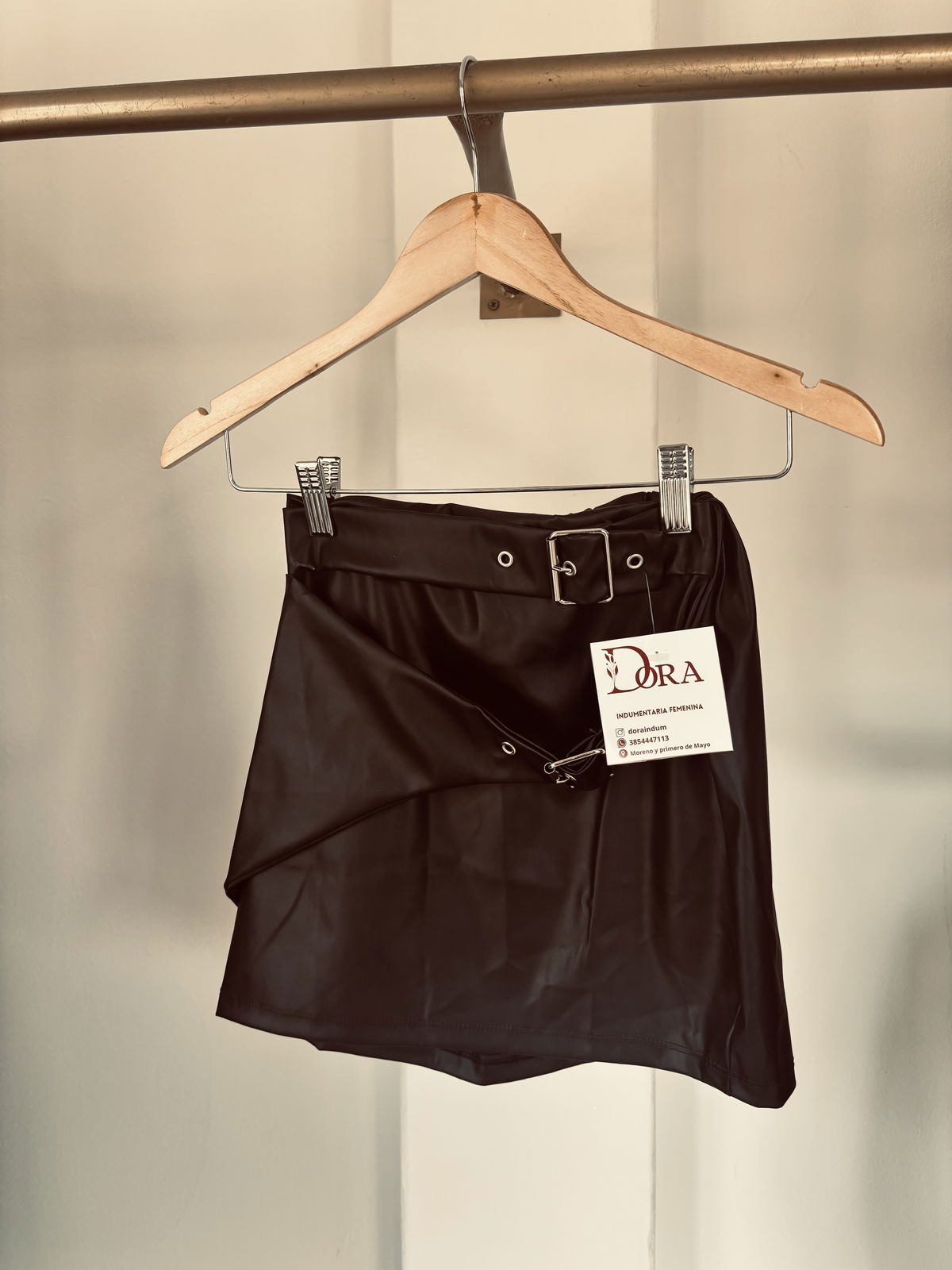 Pollera ecocuero con hebillas