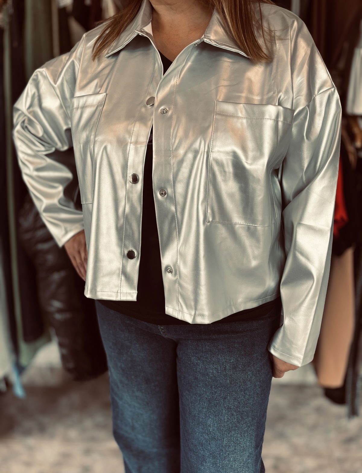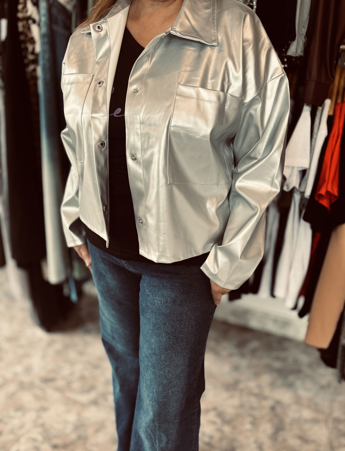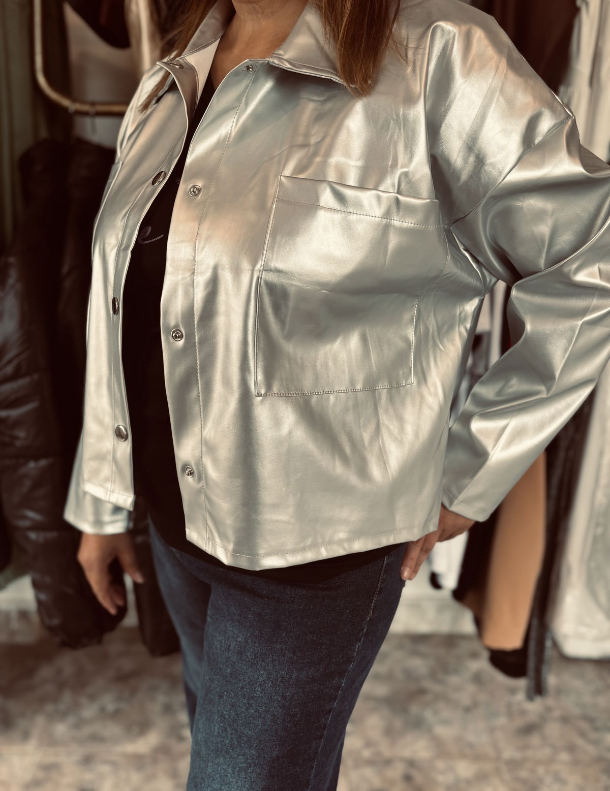 Camisaco plateado ecocuero