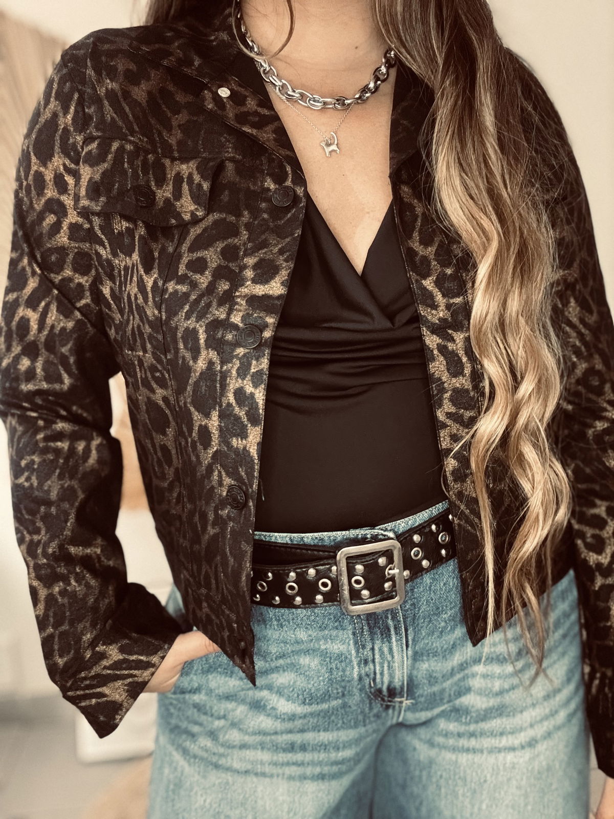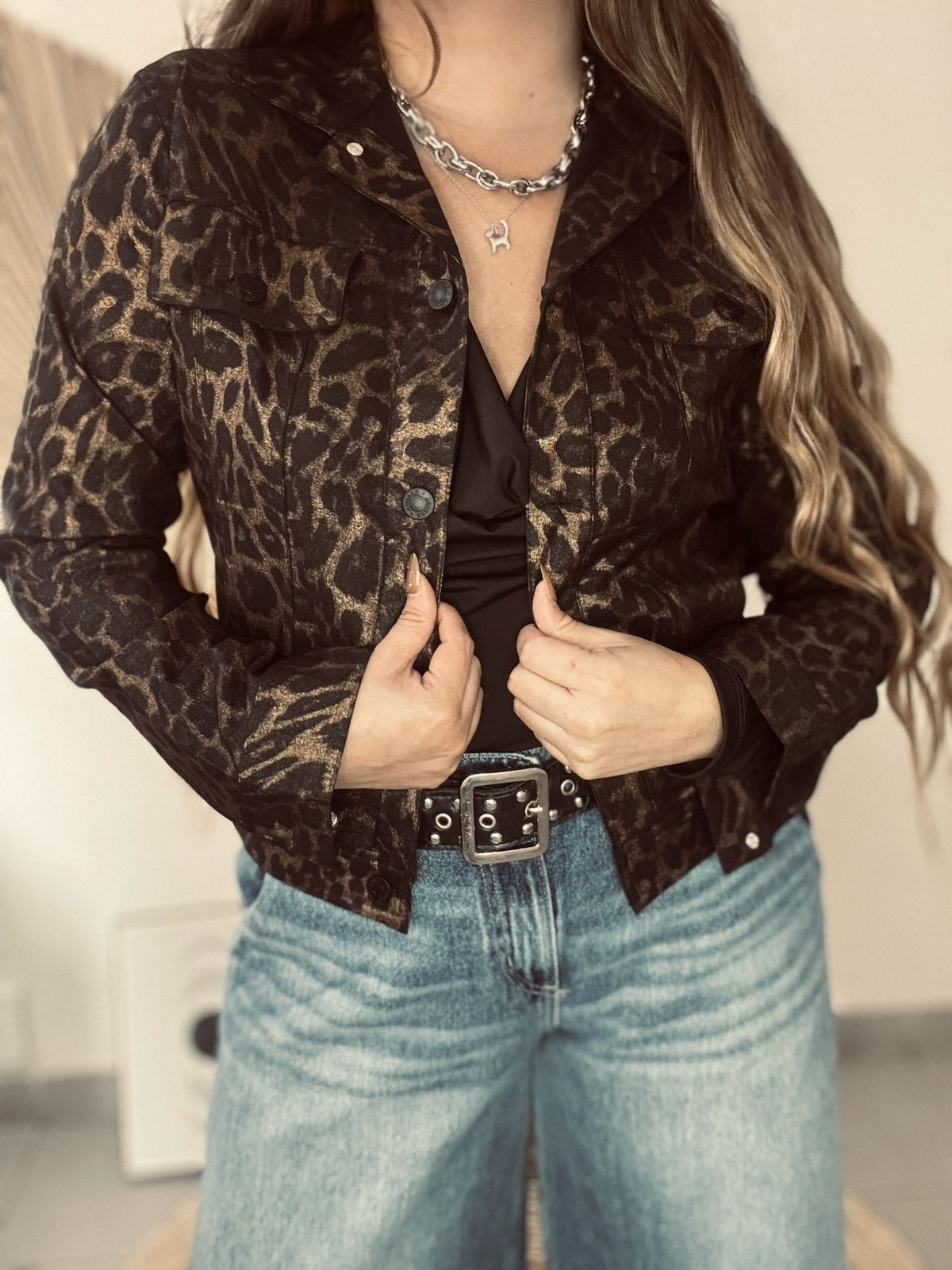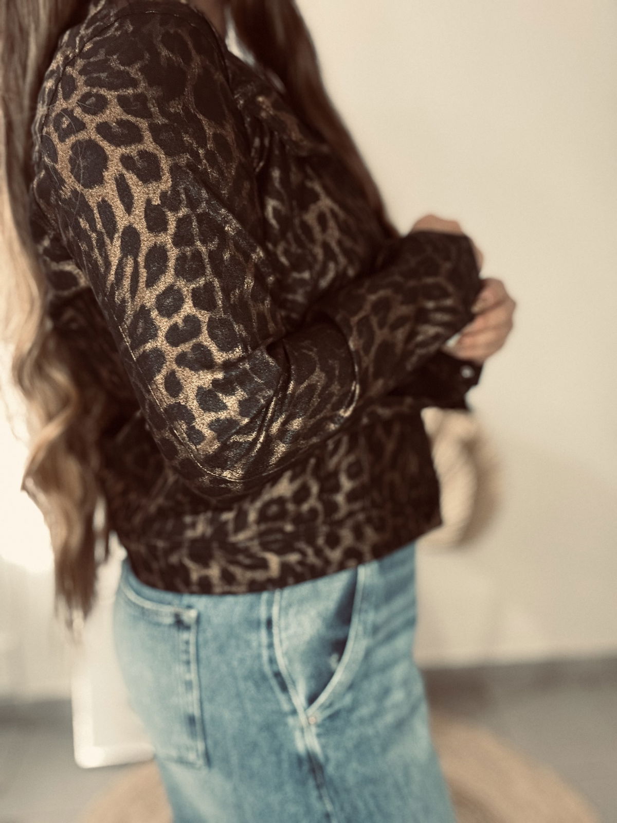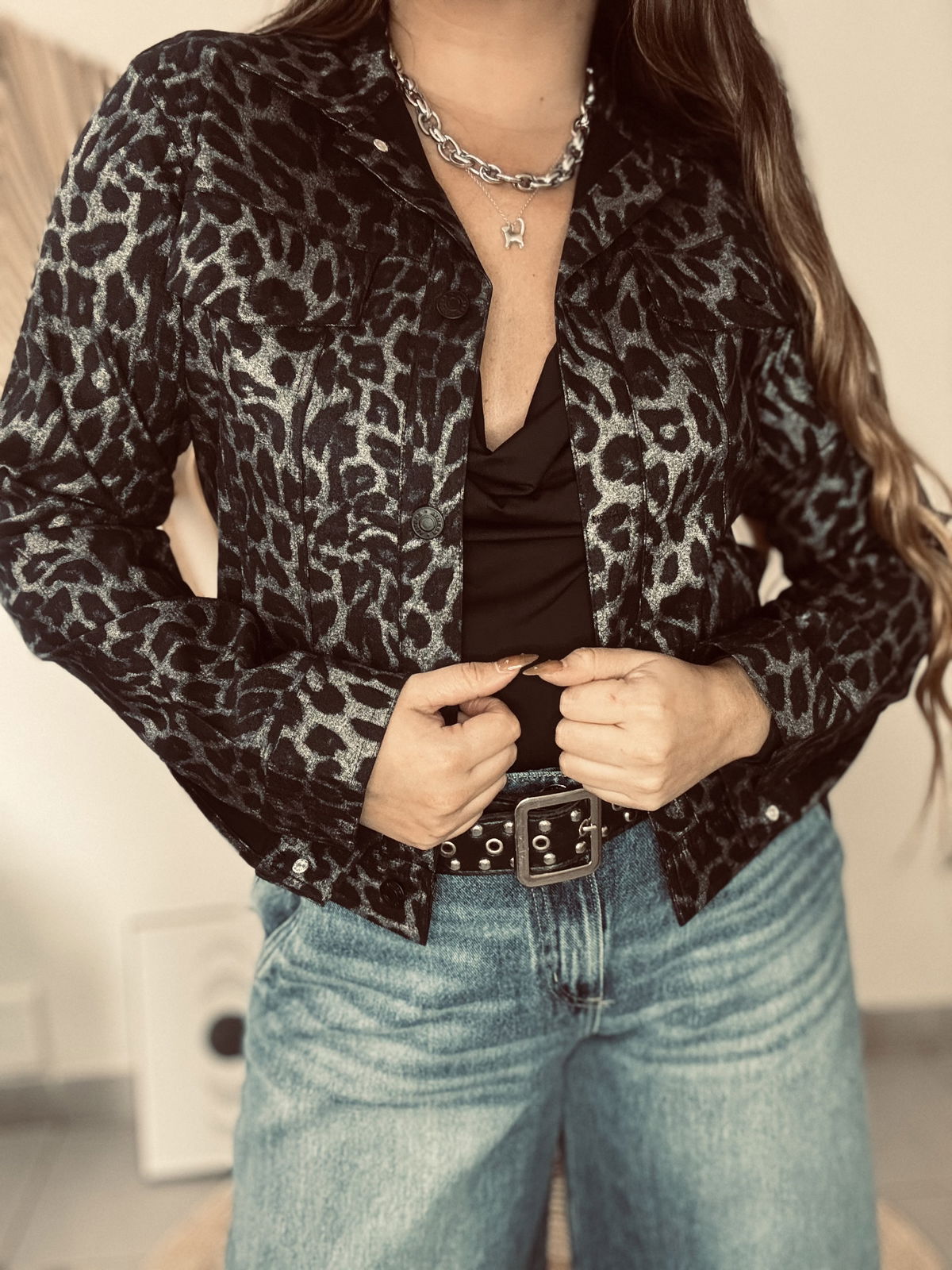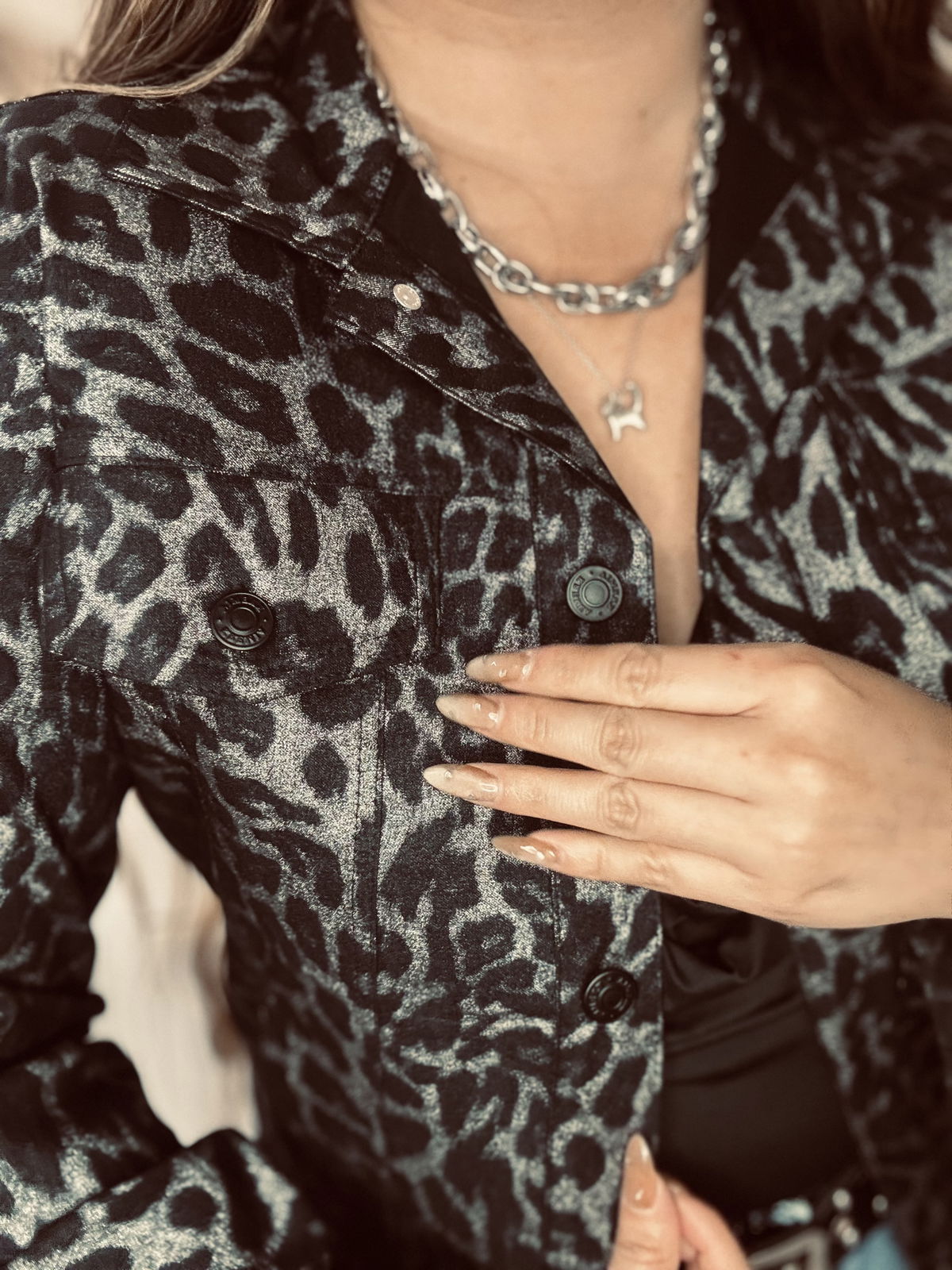 Gabardina elastizada con estampado animal print. La tela es completamente metalizada, disponible en dorado o plateado. Impactante, canchera y con el calce perfecto.
