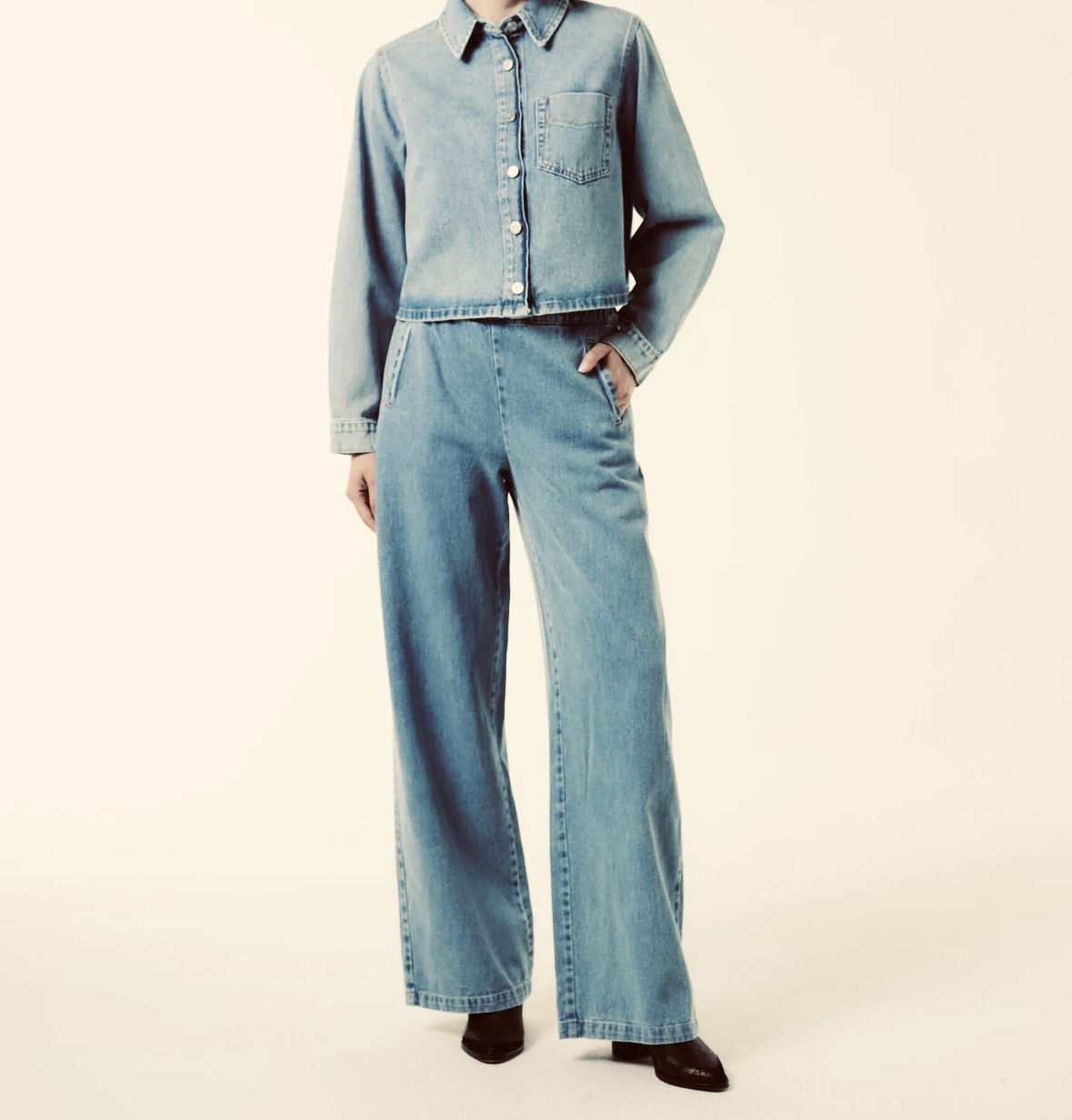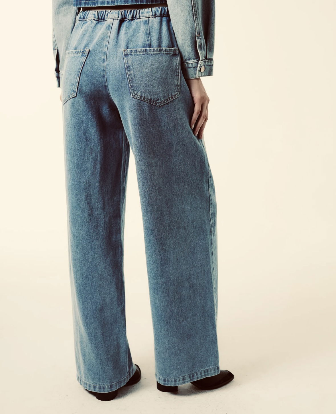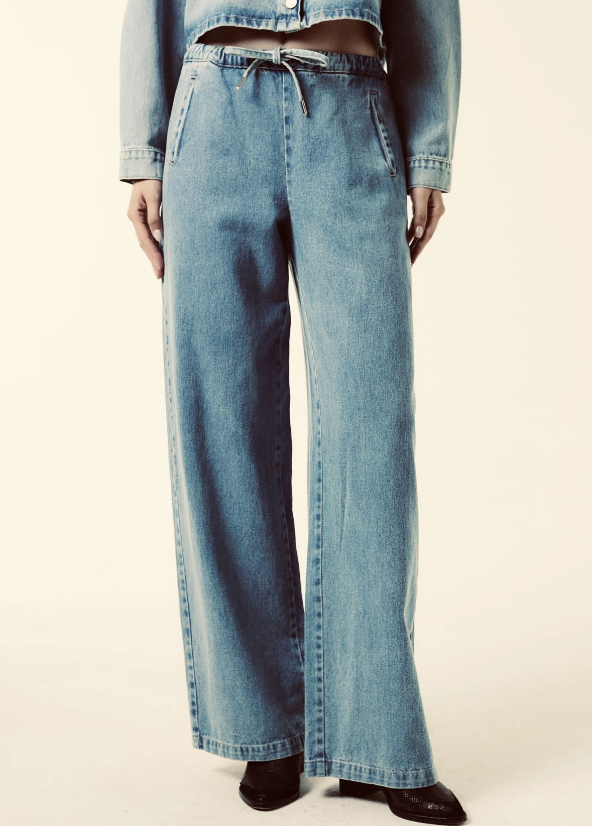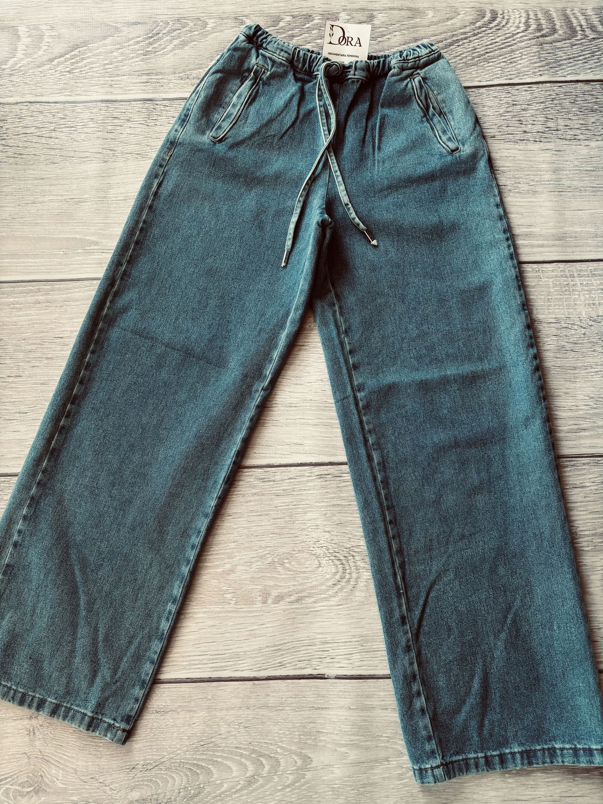 Jean recto con cintura elástica y cordón. Lleva bolsillos ojal en laterales.