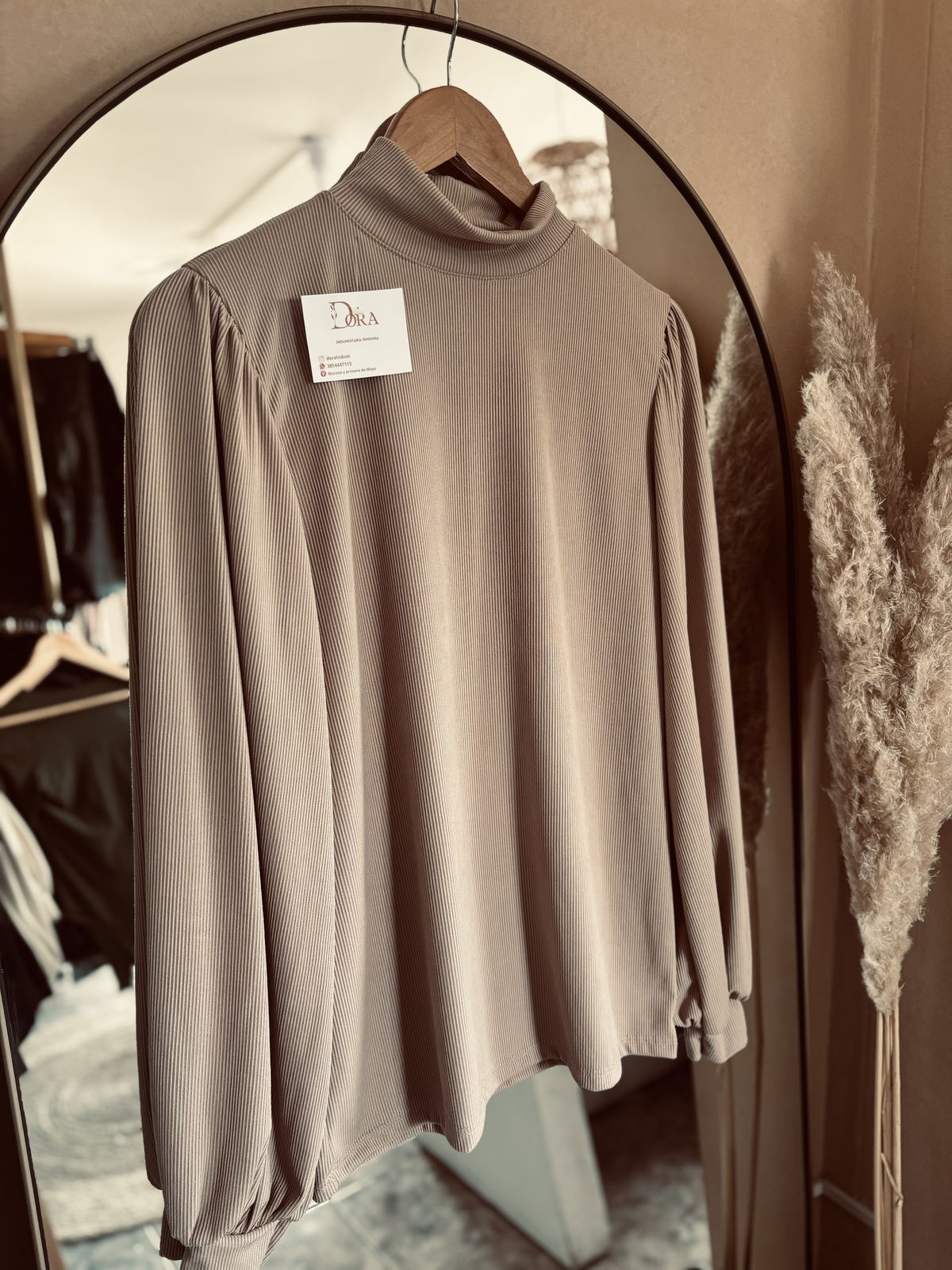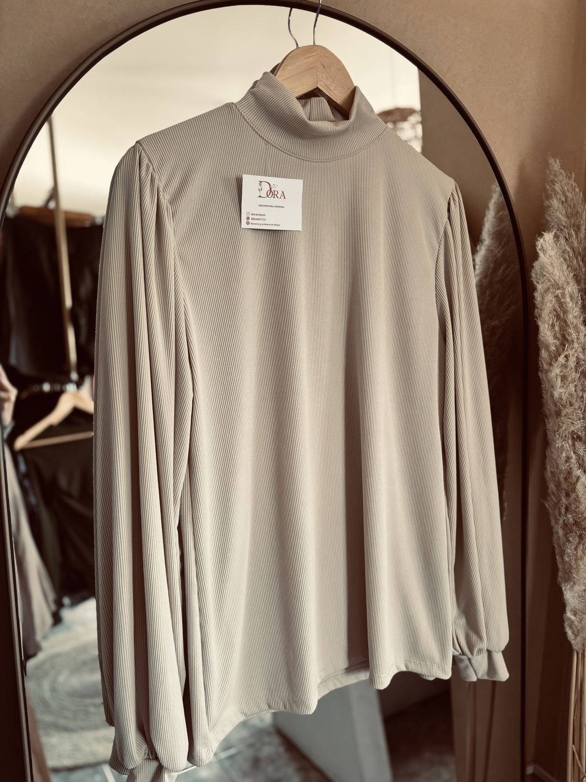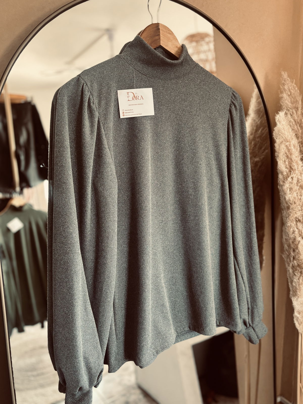 👚 Corte recto, cuello alto y mangas con leve frunce en los puños para un toque femenino.
