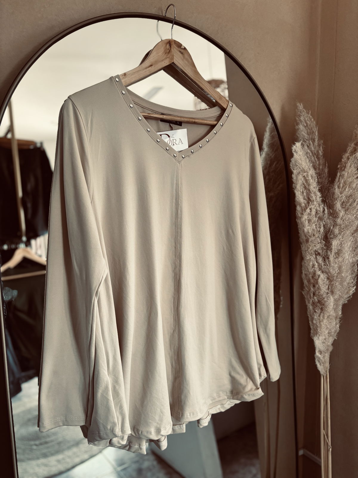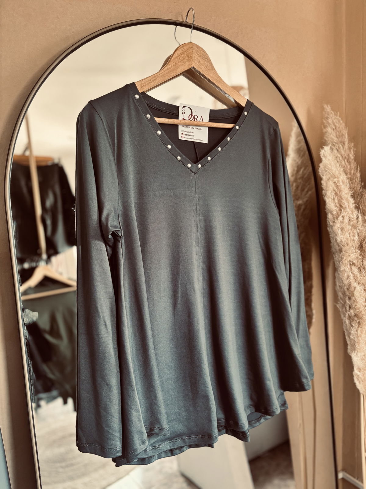 Blusa evasé de modal soft, con escote en V(favorecedor y estiliza) y detalles de tachitas que marcan la diferencia.