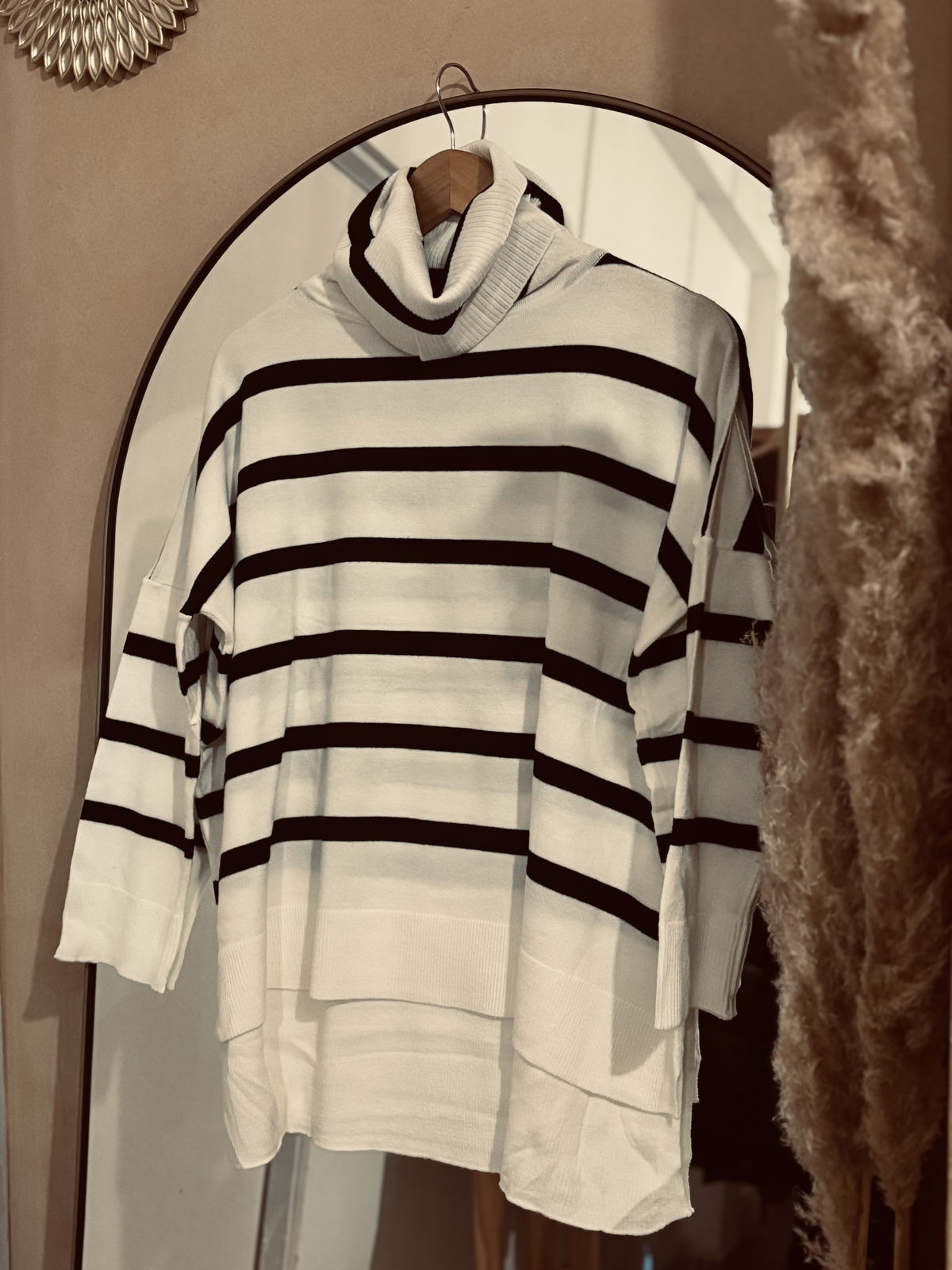 Un clásico renovado que no puede faltar en tu guardarropa. Este polerón de bremer es suave al tacto pero lo suficientemente abrigado para acompañarte en los días fríos. Su diseño rayado le aporta un toque canchero y moderno, mientras que el cuello alto tipo polera y el corte más largo en la parte trasera lo hacen súper cómodo y favorecedor.