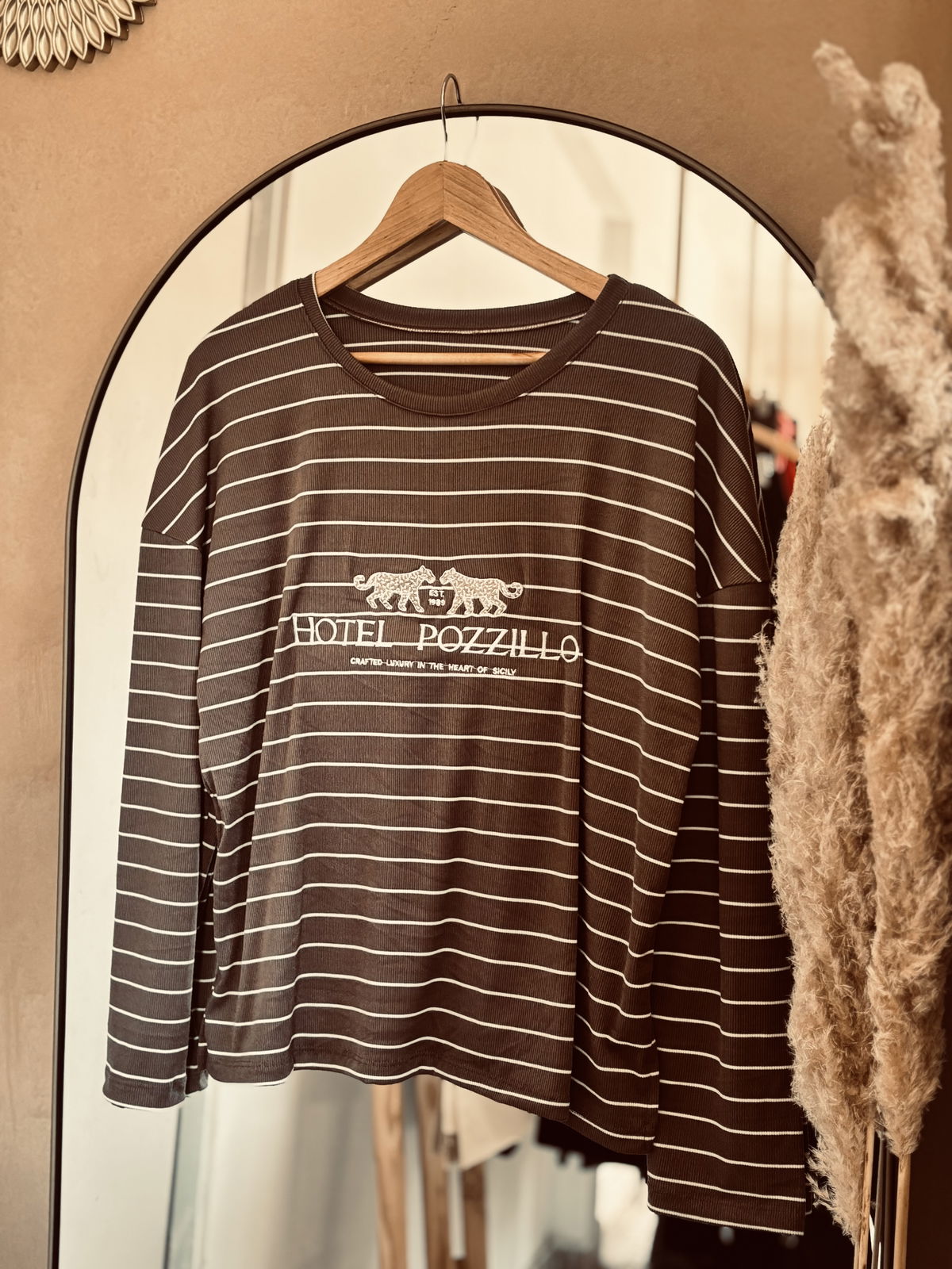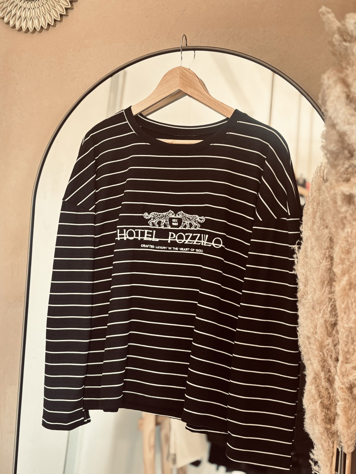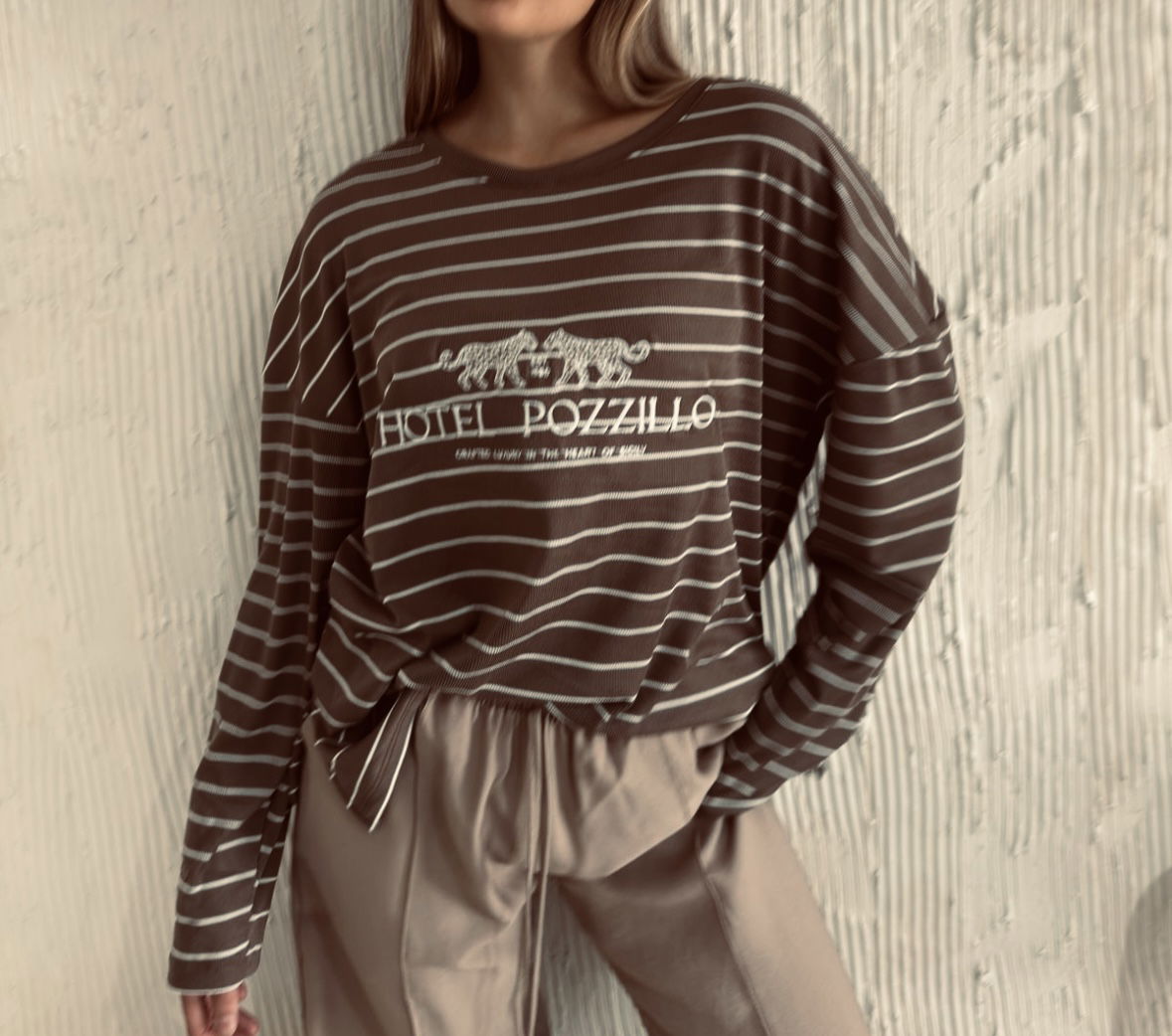 Estampa bordada al frente y rayas finitas que suman ese detalle que marca la diferencia.