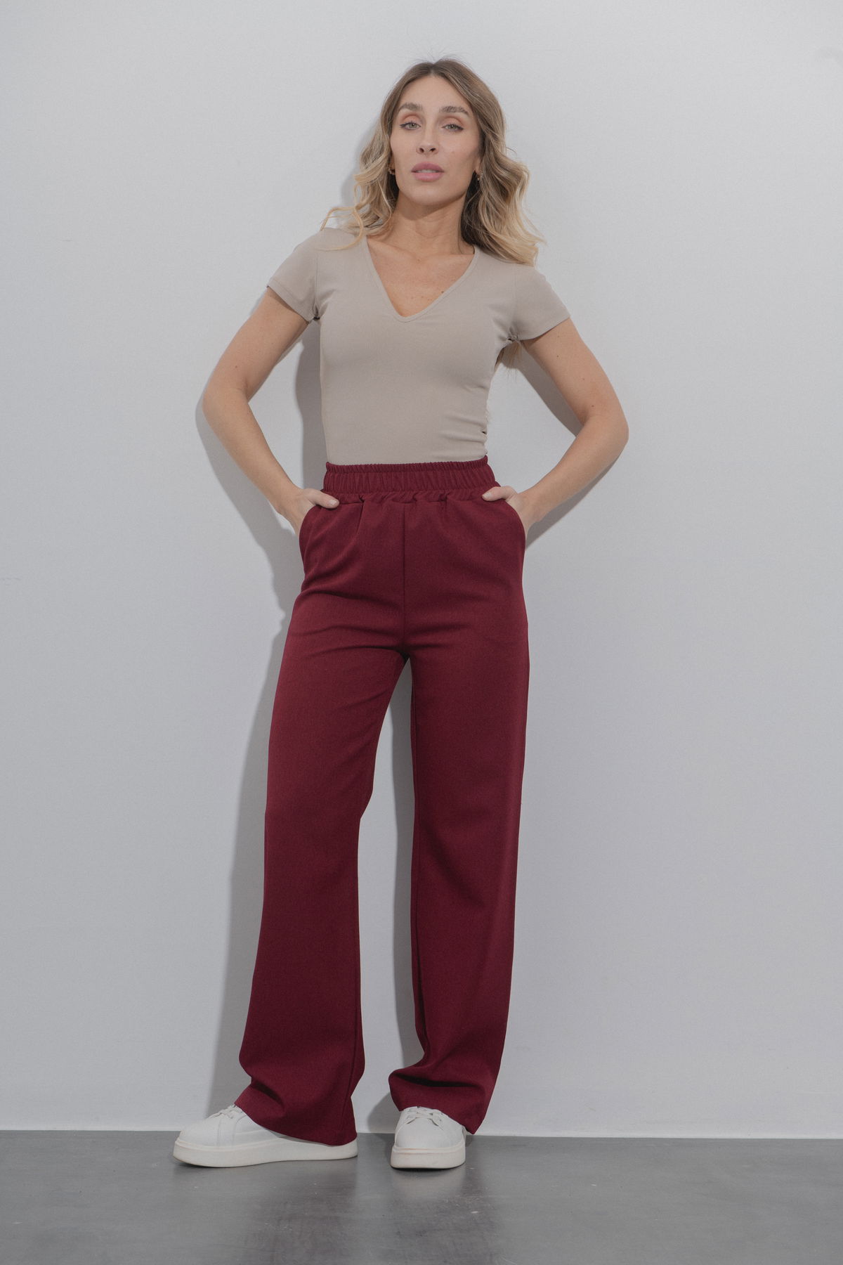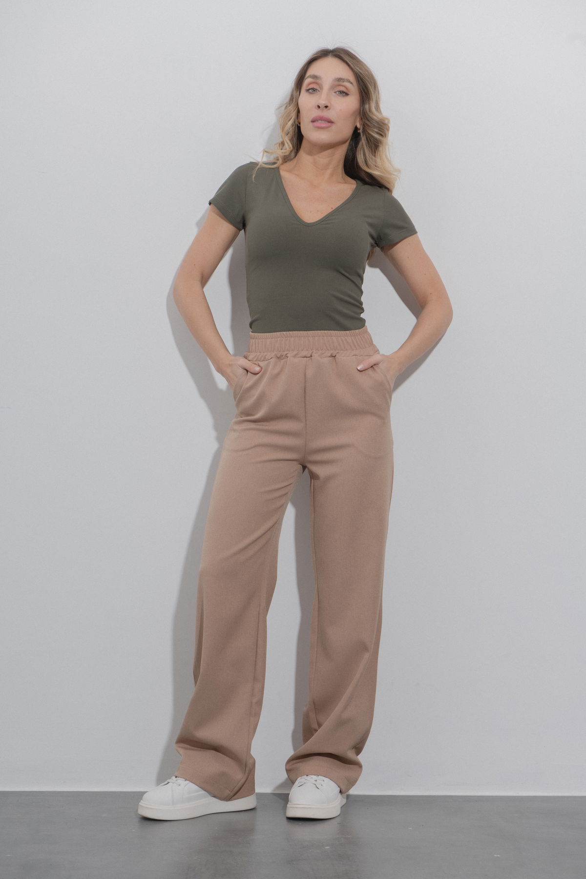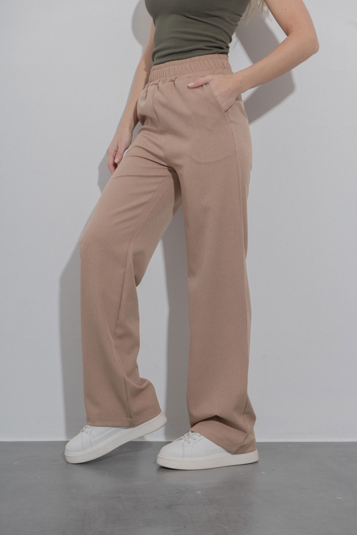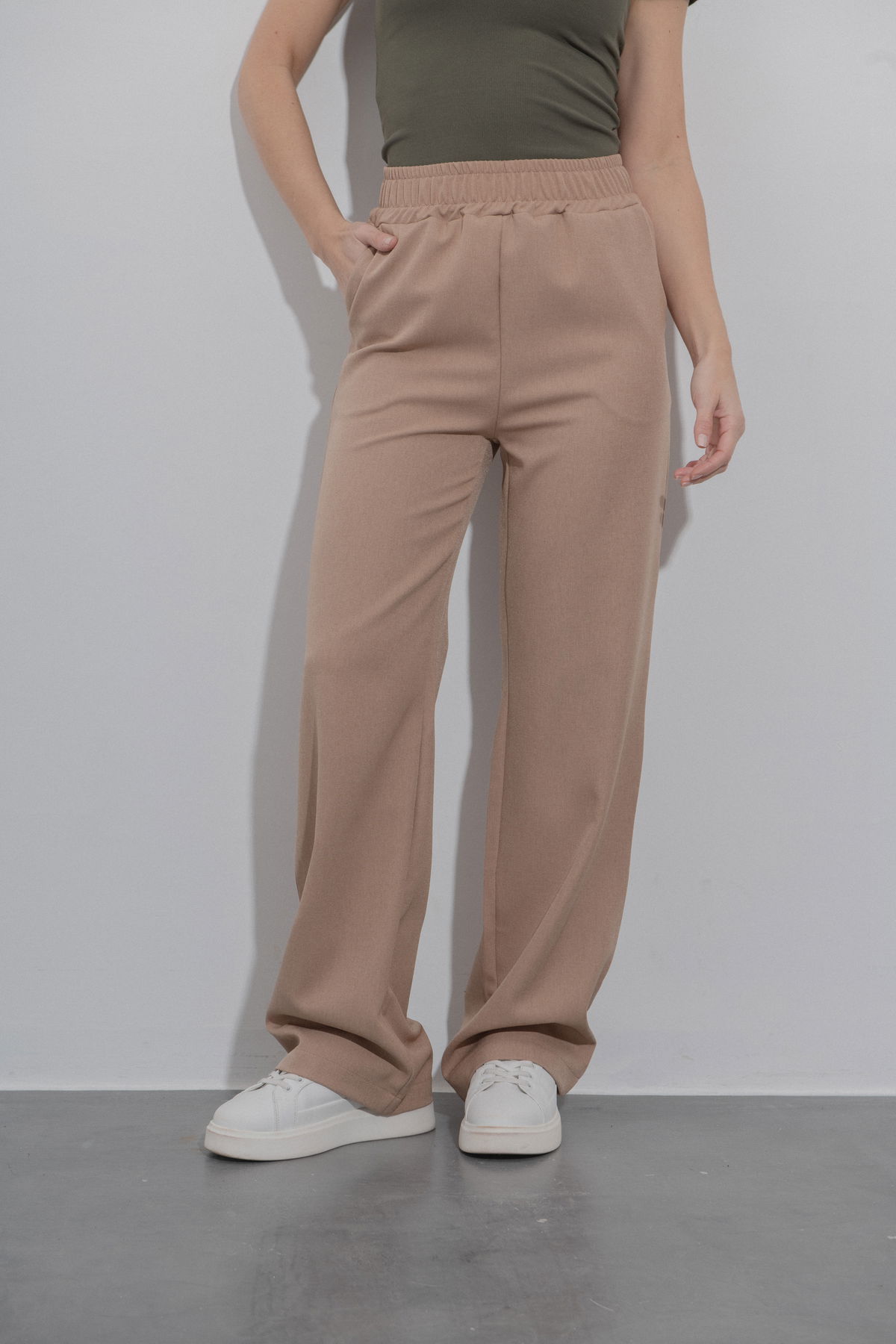 Pantalón palazo con cintura elástica y bolsillos
