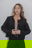 Chaqueta corta, escote a la base, bolsillos con tabla, botones marmolados