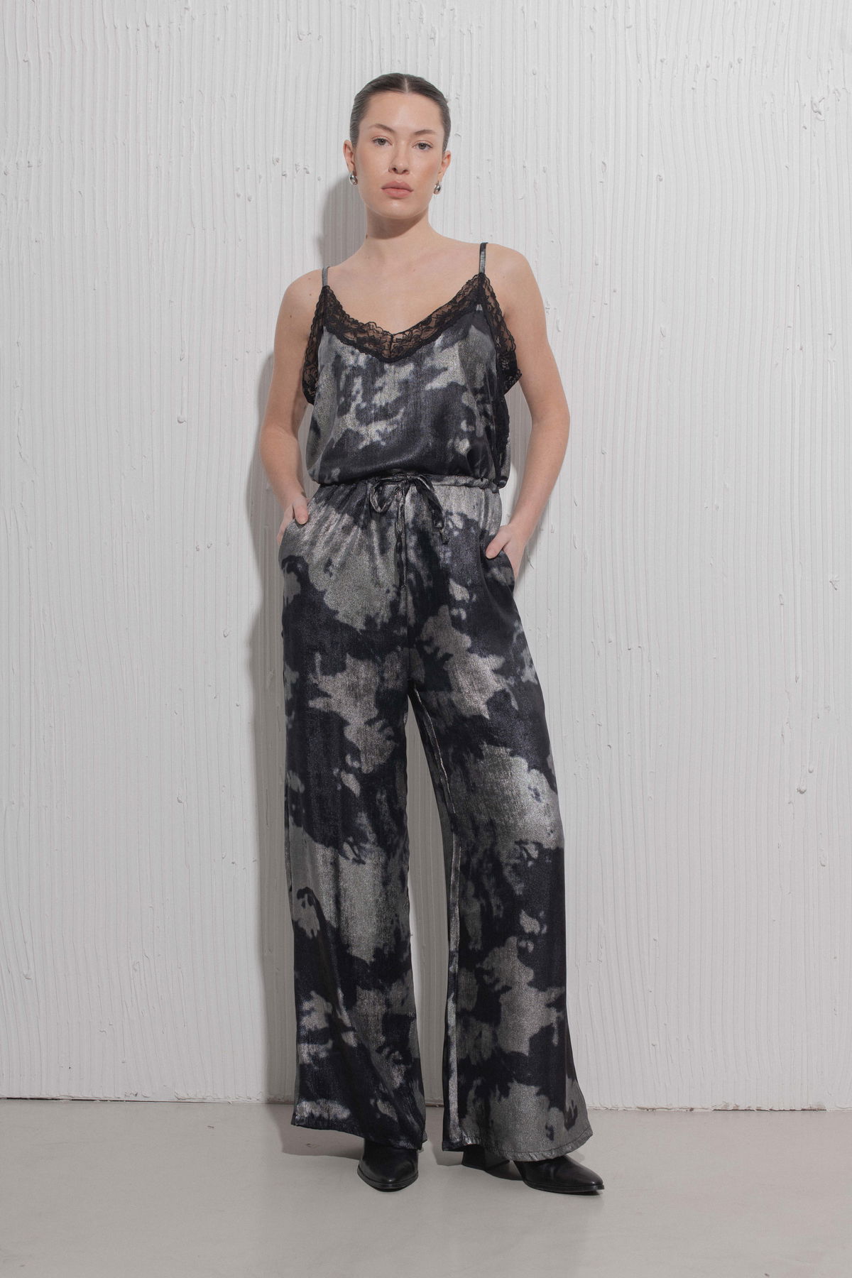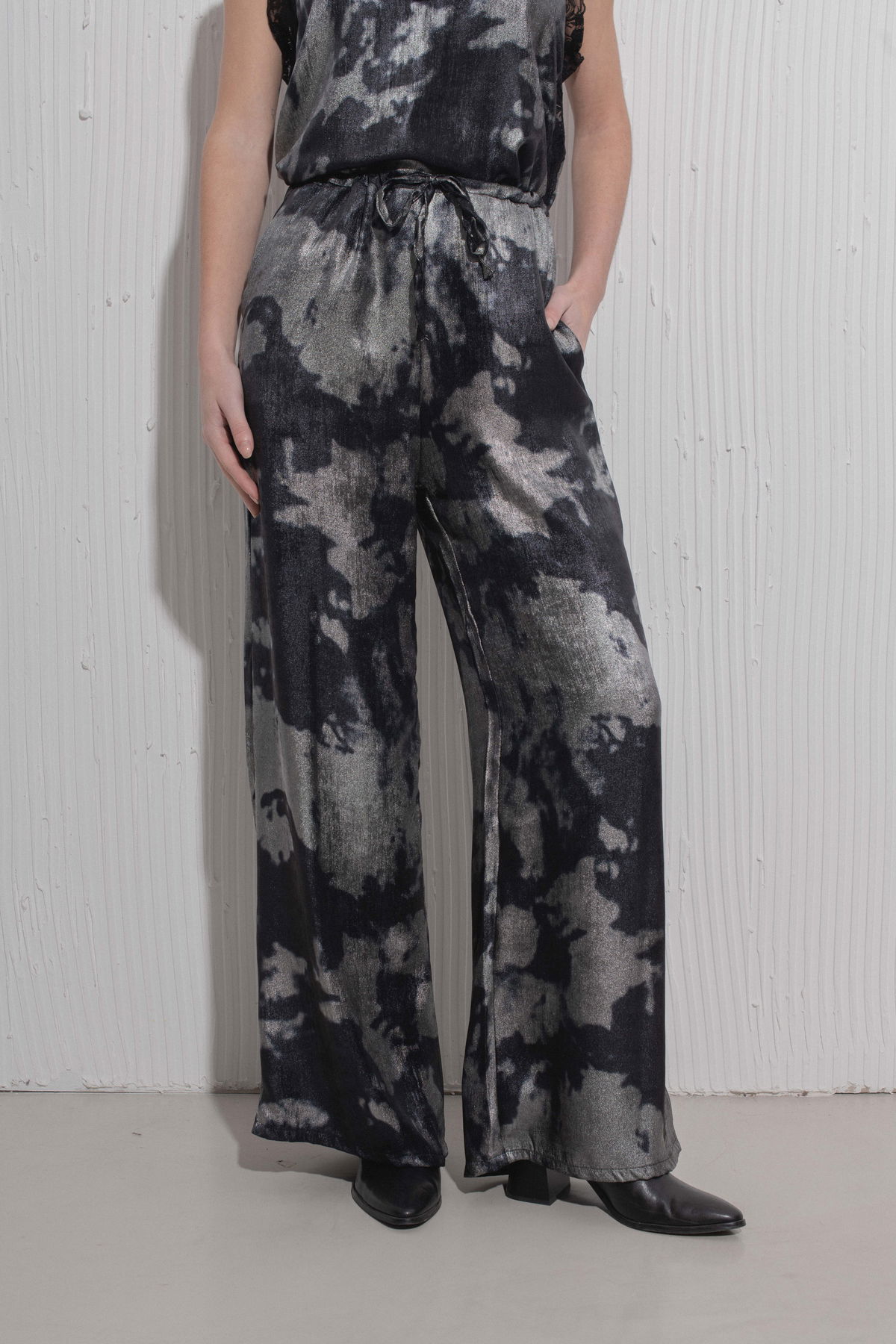 Pantalón de seda estampada con cintura regulable
