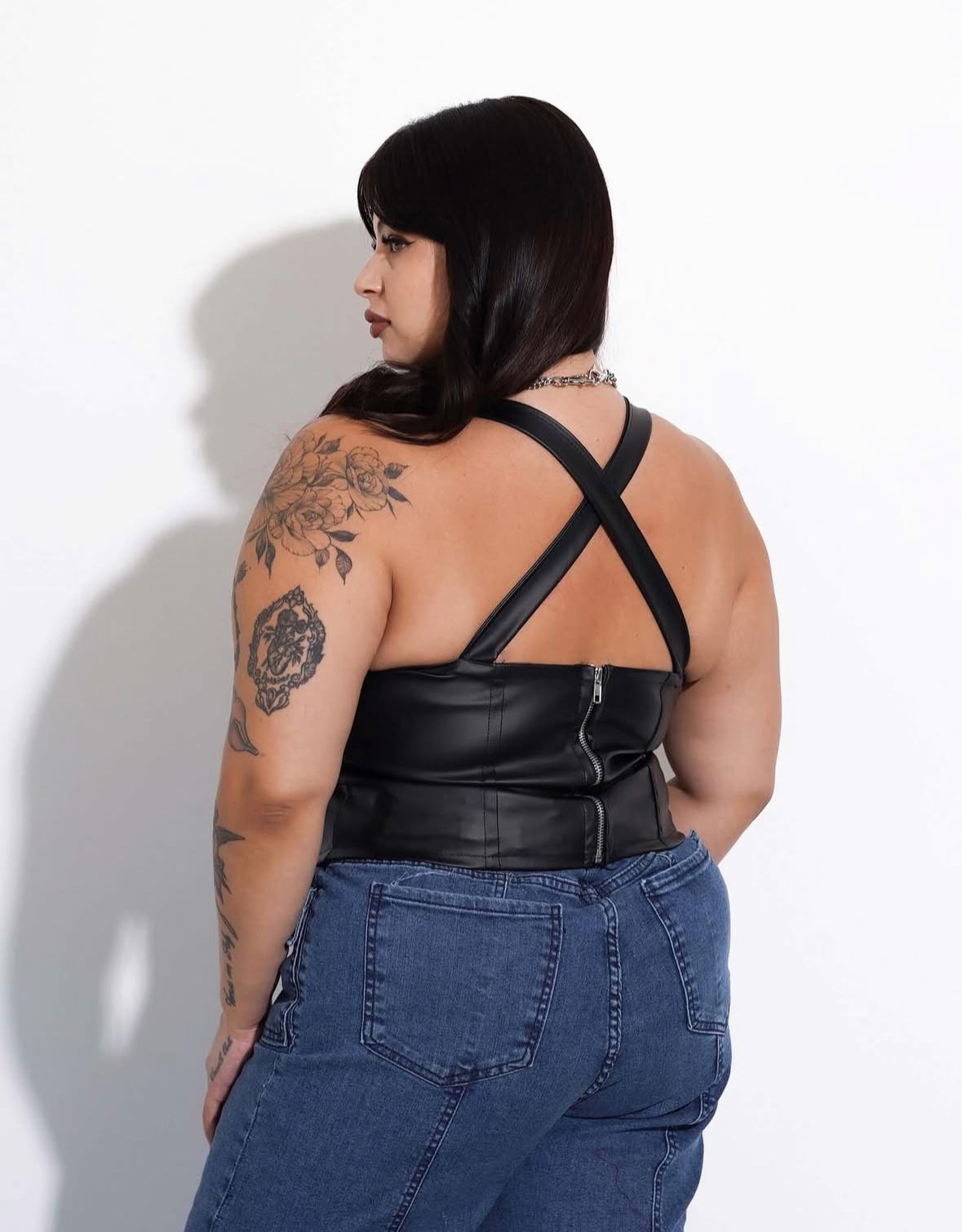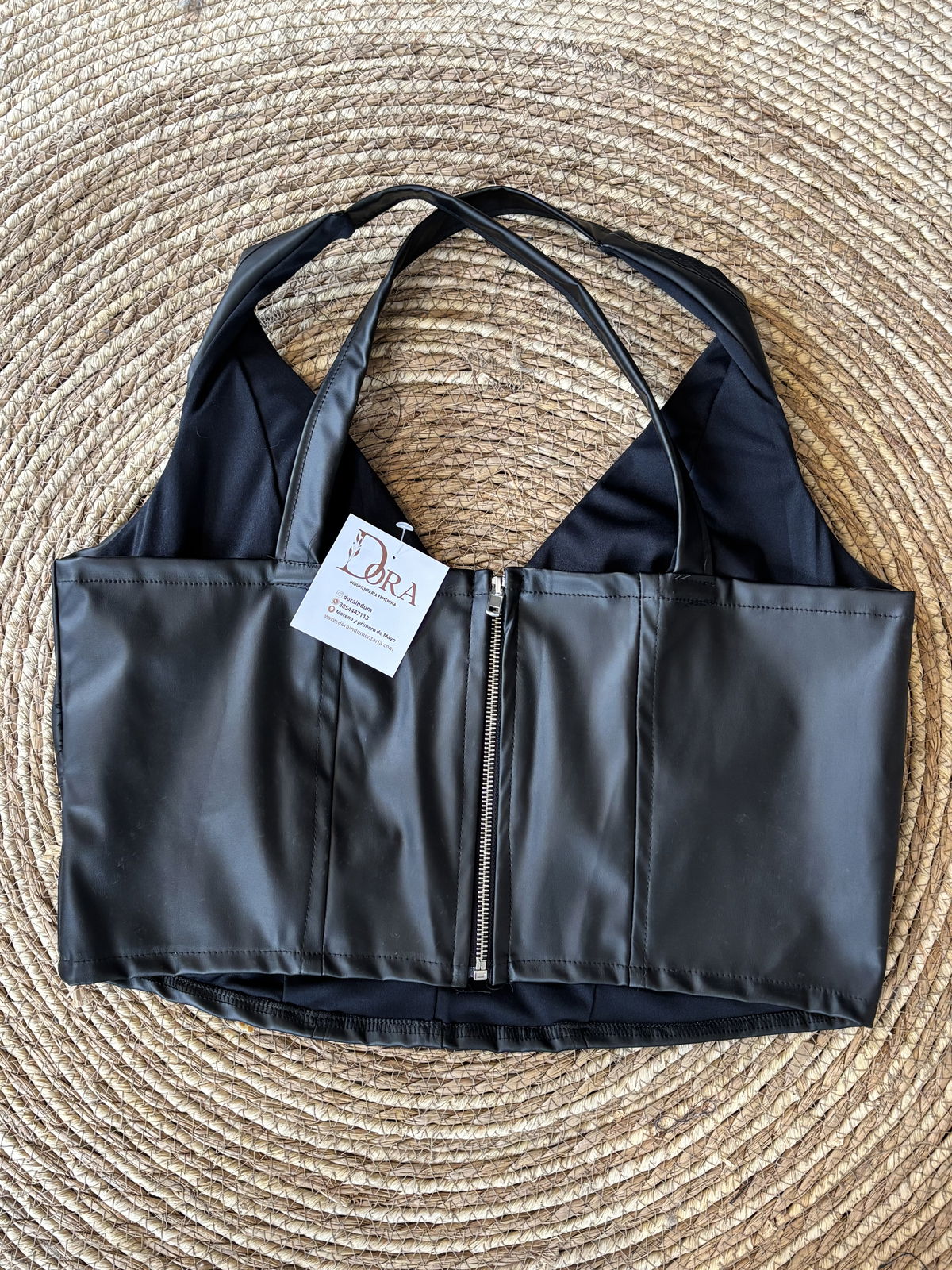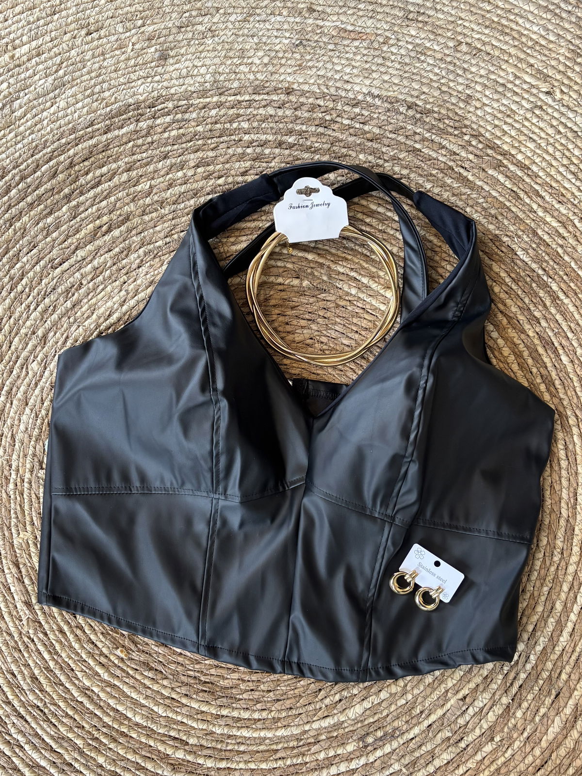 Top tipo corset de ecocuero con cierre trasero