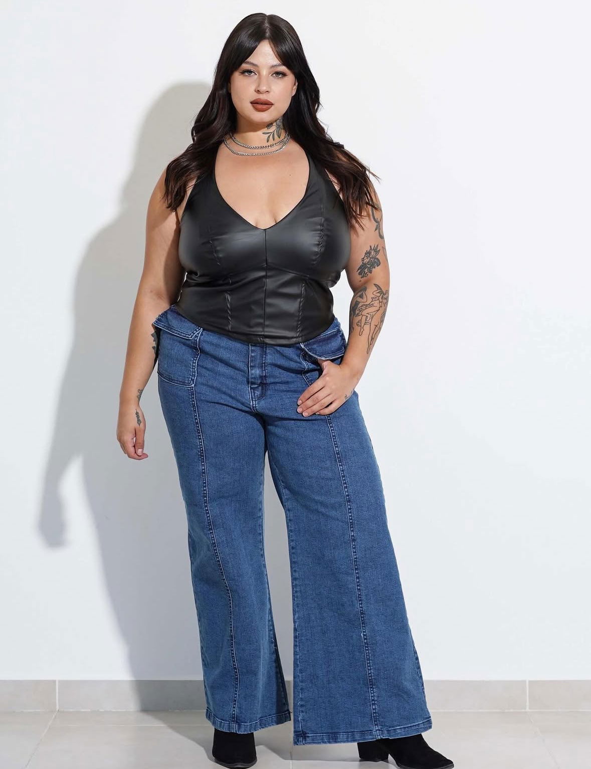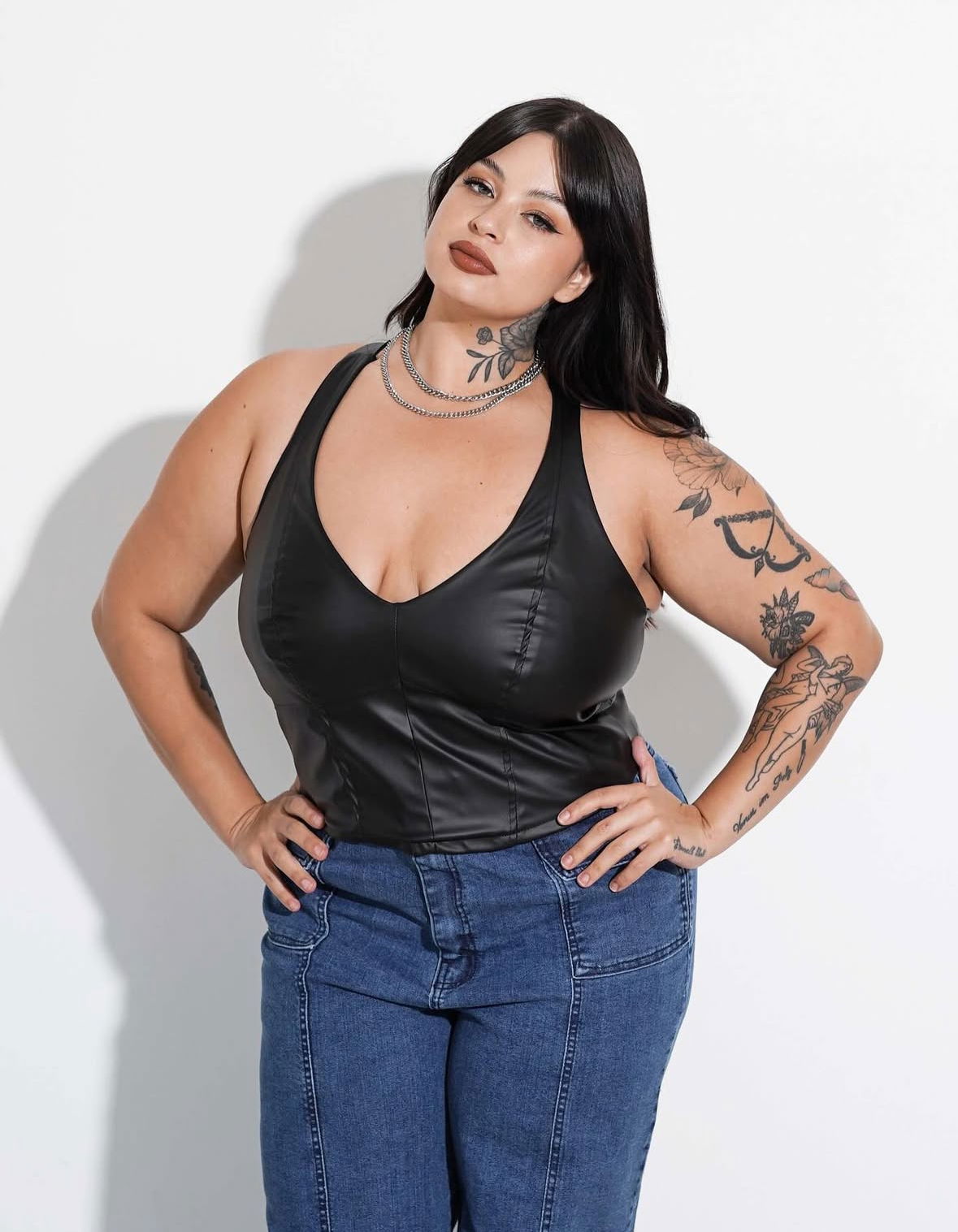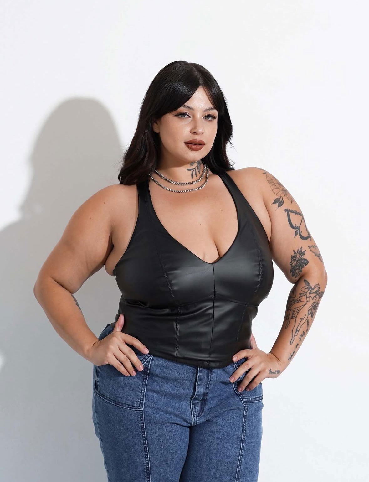 Top tipo corset de ecocuero con cierre trasero