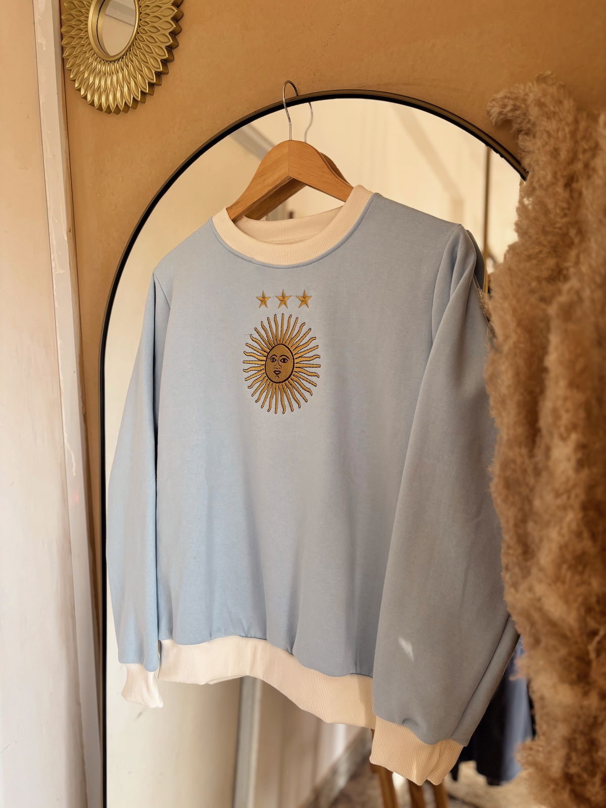 Buzo de algodón con frisa y sol bordado